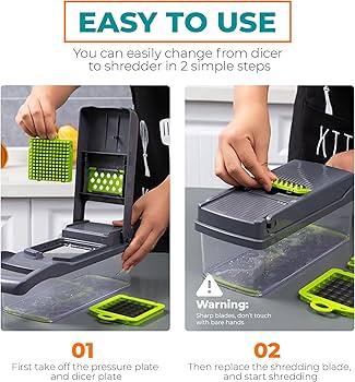 12 Interchangeable Blades From fine dicing to thick slicing, grating, shredding, and even julienning, our stainless steel blade options give you complete control.