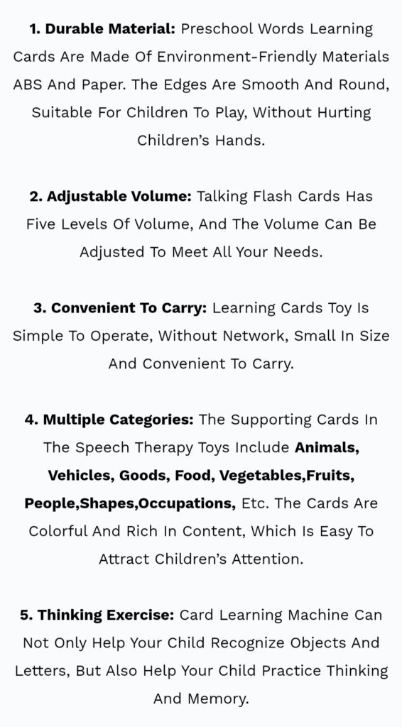 Parents Loves This talking flash card Because It Is Strong And Lightweight, Has A Durable Battery, And Keeps Your Kid Busy While You Handle Other Important Thing