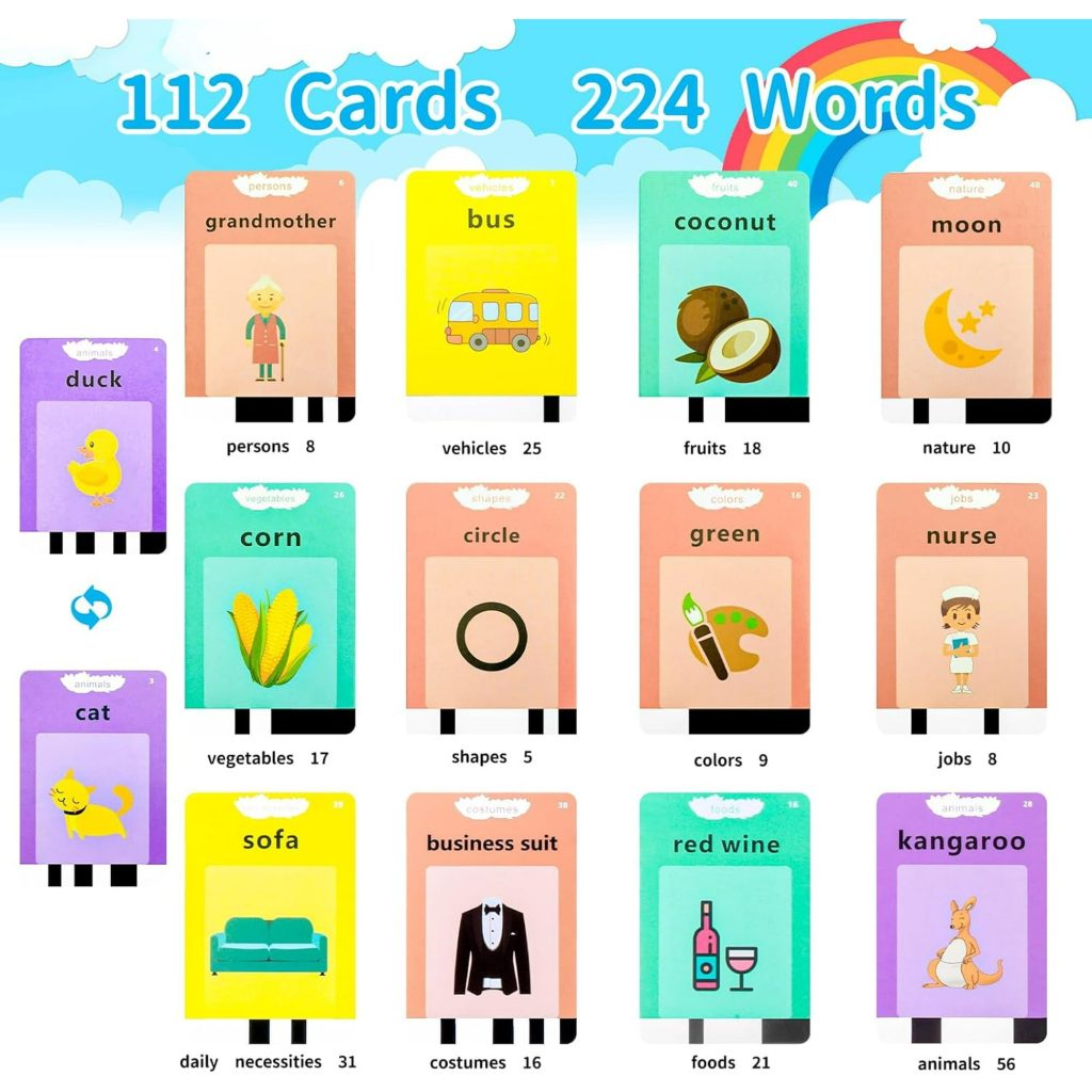 Speech Toy with 112 Double sided Flashcards that aids faster Learning(that Is 224 Different Pronunciation, Spelling And Pictures Of Different Animals,Food, Objects and so on.