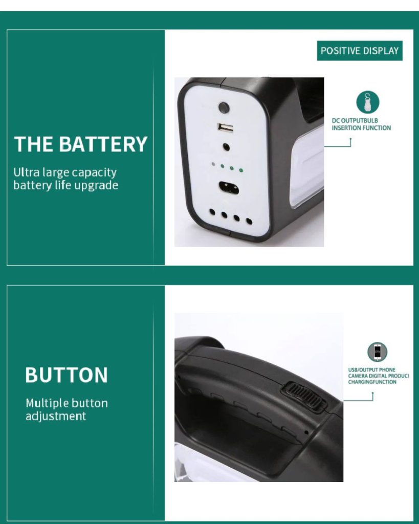 This Portable Solar Power Generator Can Be Used Anytime And Anywhere The Solar Generator Lighting System Is Effective And Easy To Operate, It Can Be Easily Put Into A Backpack Or Car, And Taken Anywhere You Need Power Can Be Used For Camping, Hiking, Fishing, Expedition, Hunting, Outdoor Activities ETC
