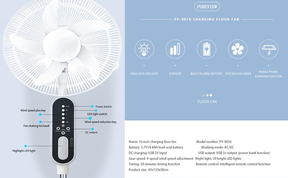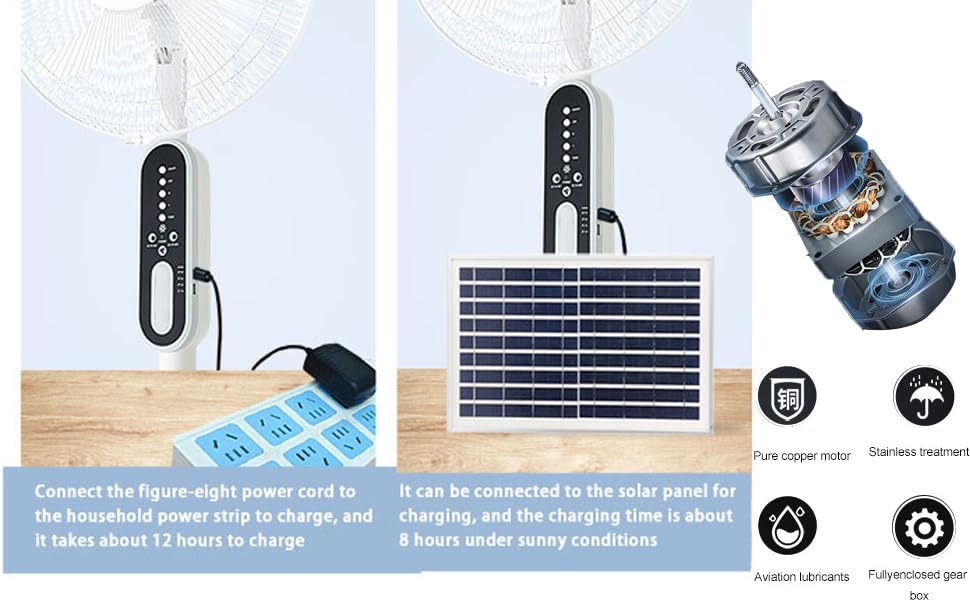 Original Solar Powered Rechargeable AC/DC 16 INCHES 3 Wind Speed Fan Rechargeable Table Fan