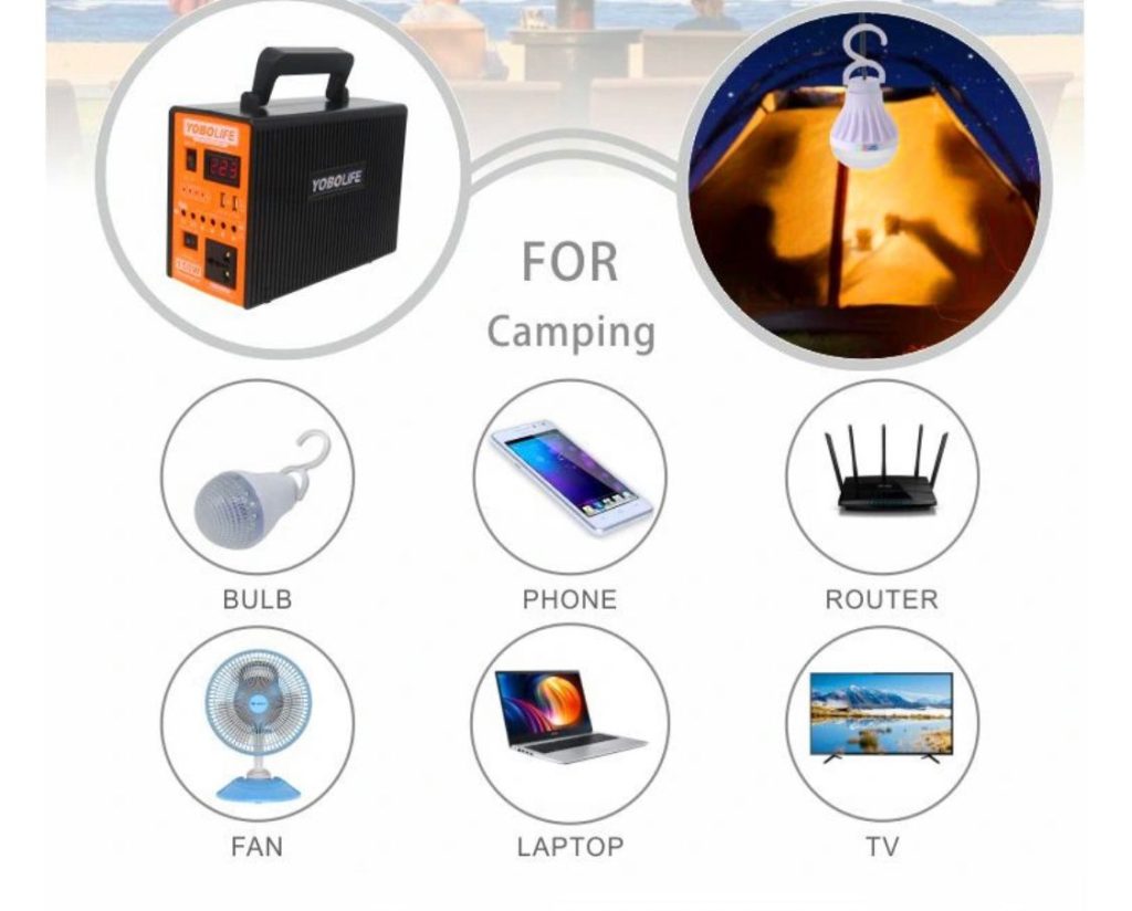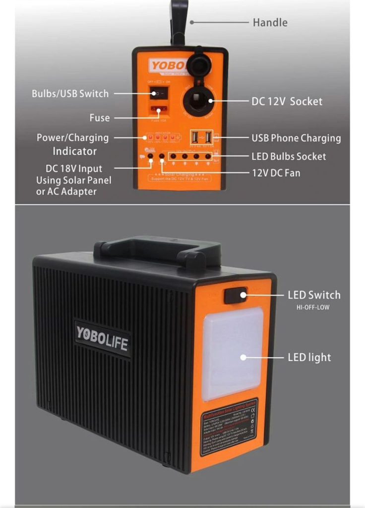 It Serves As a Solar Power Station For Home Use With a 12V Power And Supports USB. This Improved Solar Systerm Has 2 USB5V DC Output To Charge Your Tablet, iPhone, Power Your Television, Laptops, Electric Fan, Digital Camera, Etc